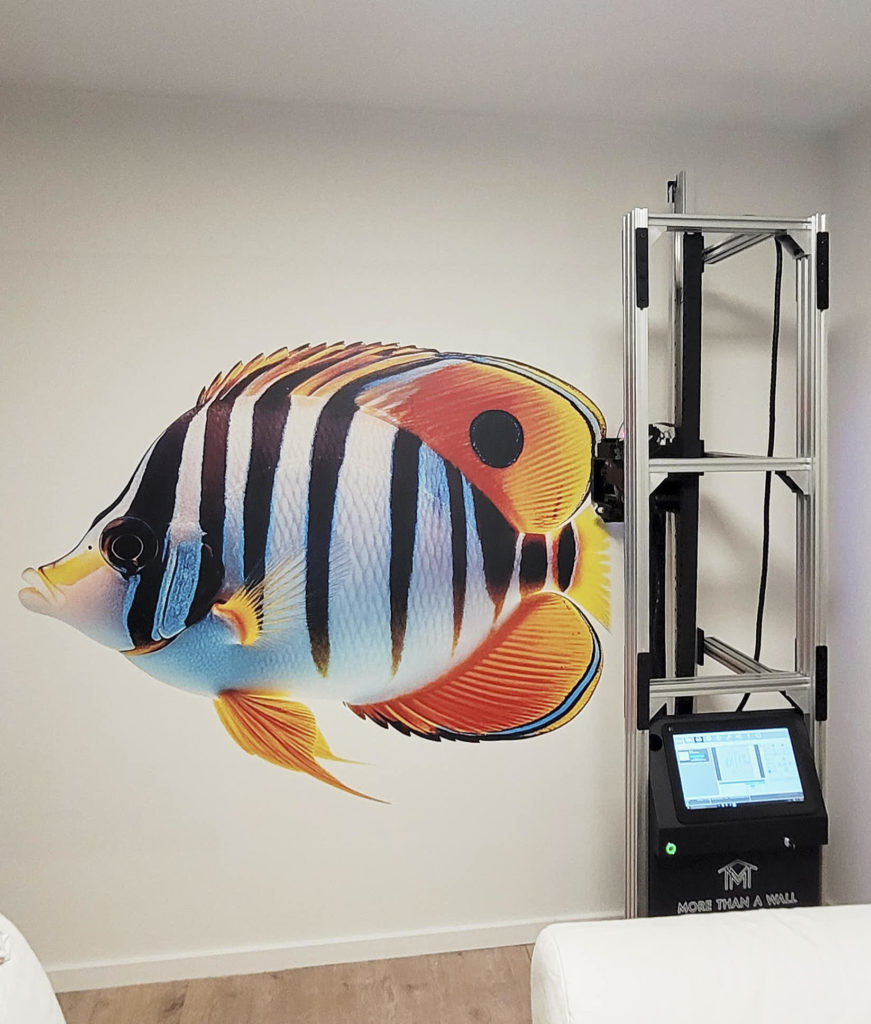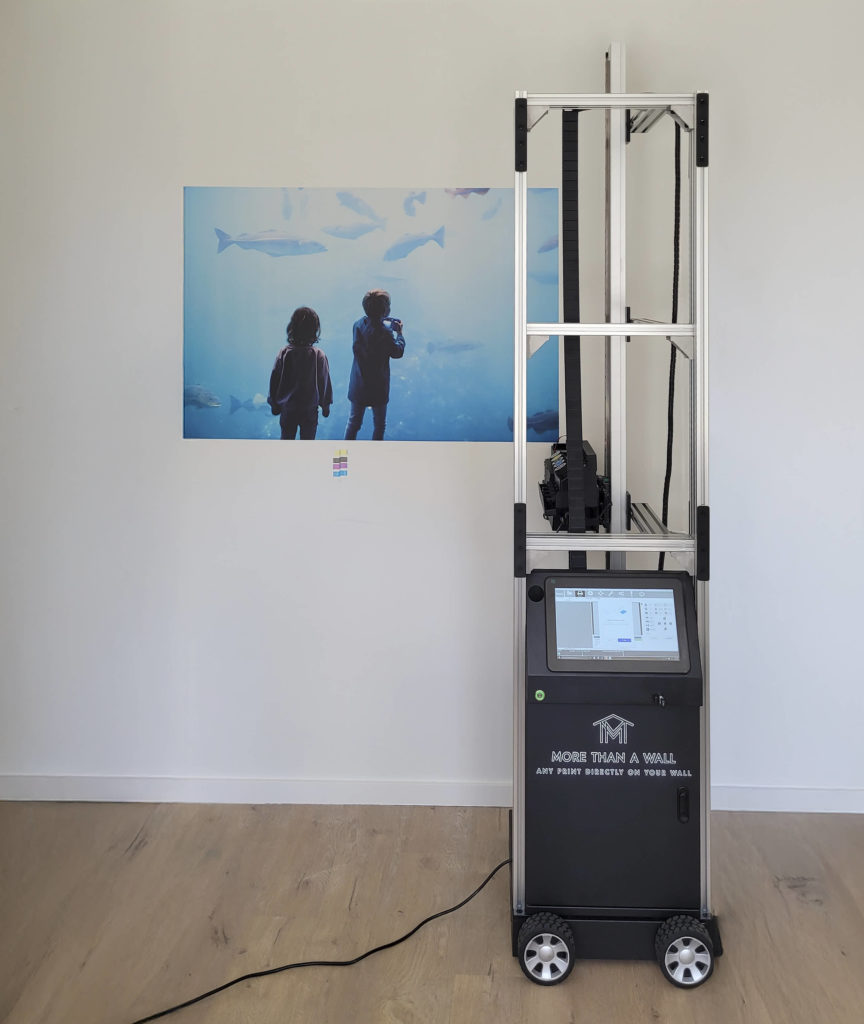 Wall printing is een techniek waarbij een afbeelding, illustratie of tekst rechtstreeks op een muur wordt geprint met een gespecialiseerde verticale printer. Het resultaat is een haarscherpe, duurzame print zonder stickers of behang.